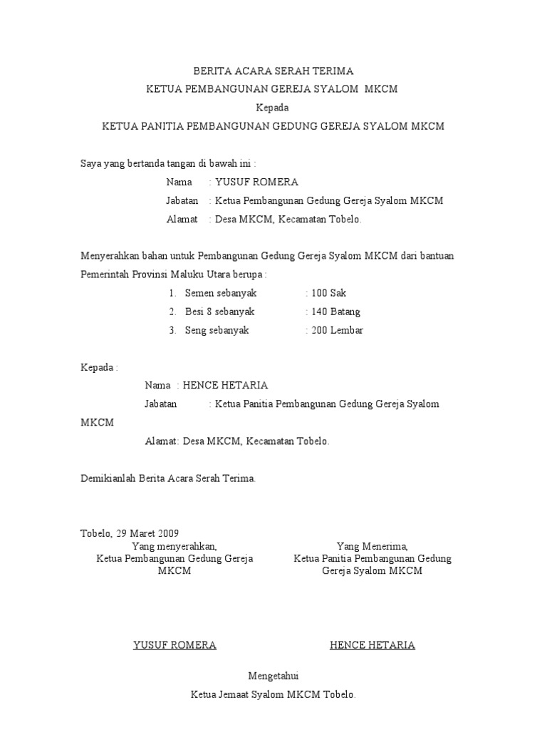 Untuk itulah sebuah perusahaan atau instansi memiliki banyak karyawan dan pegawai yakni menjalankan pekerjaan sesuai dengan tugasnya masing - masing. 3 Mantang 83552 BERITA ACARA SERAH TERIMA BARANG HASIL PELAKSANAAN BANTUAN SOSIAL Nomor. Pdf Contoh Berita Acara Surat Pernyataan Reni Khairani.