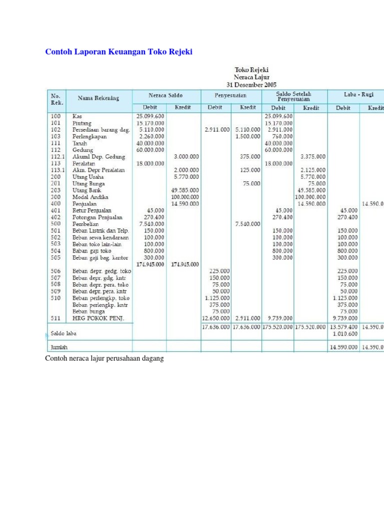 Contoh Laporan Keuangan Toko Rejeki