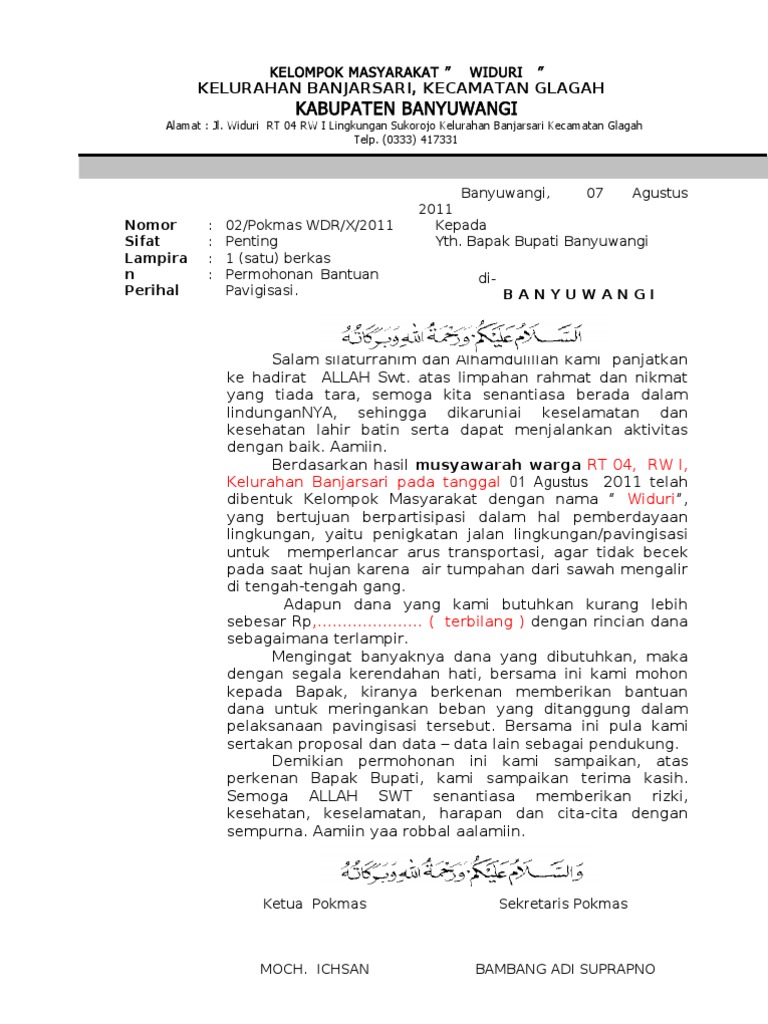 Bahwa dulunya kami ini cuma seorang Honorer di Salah satu Instansi Pemda di provensi JAWA TIMUR tepatnya KOTA MADIUM dan Kakak Saya di Instansi Pemerintahan di Kantor BUPATI DI JAWA TIMUR Saya Sudah 8 tahun dan Kakak Saya 10 tahun jadi tenaga honorer belum. Contoh proposal permohonan bantuan dana ke wali kota untuk perorangan. Di era globalisasi ini masyarakat secara umum dan kaum muslimin semakin jauh dari norma agama dan mementingkan kepentingan diri sendiri.