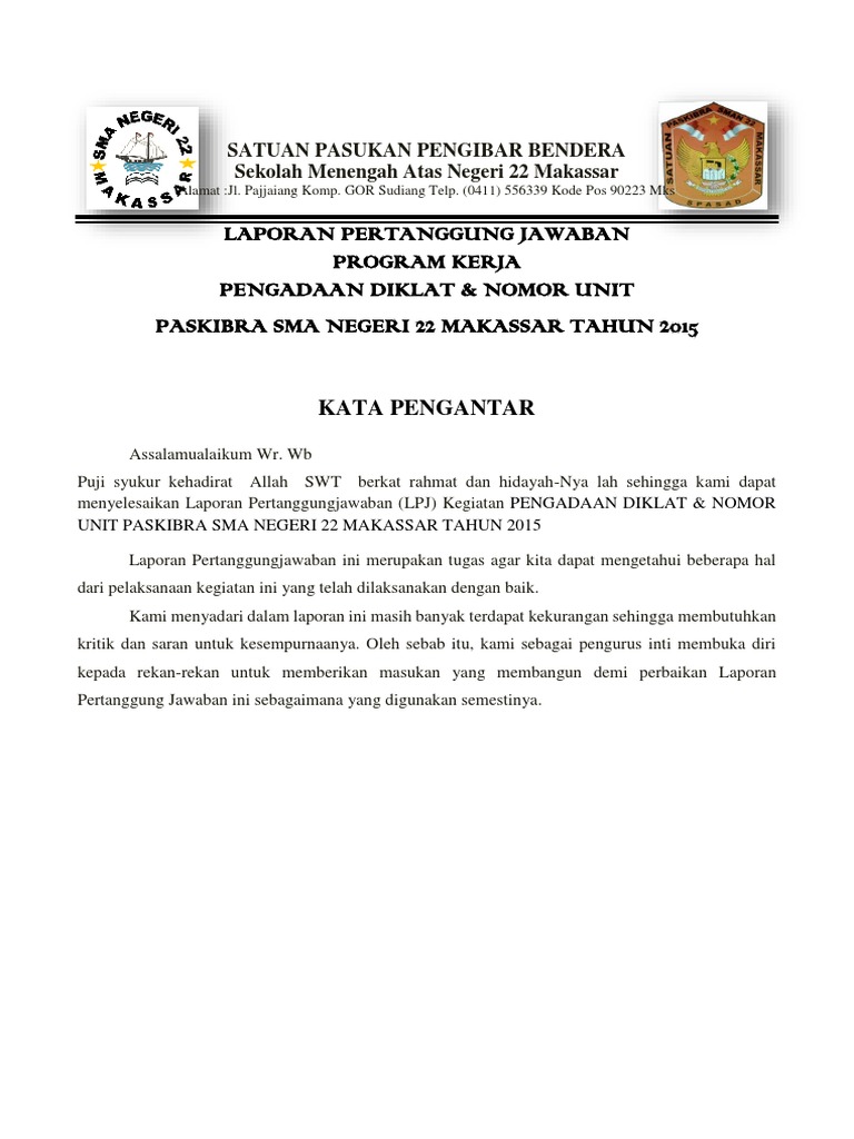 Laporan Pertanggung Jawaban Diklat Paskibra Sma Negeri 22 Makassar Tahun 2015